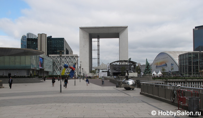- Уникальная арка в деловом квартале не только замыкает «историческую ось» Парижа, но и вместе с самыми высокими сооружениями в городе – Эйфелевой башней и башней Монпарнас – образует так называемую вторую архитектурную ось.