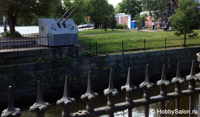 24-фунтовое гладкоствольное орудие на берегу Итальянского пруда в Кронштадте