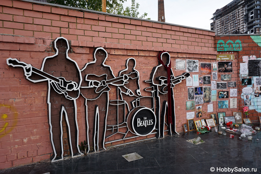 Стена возле памятника украшена многочисленными надписями поклонников легендарного экс-коллектива, которых, к слову, в Екатеринбурге немало, — именно на их деньги, без поддержки городского бюджета, и был организован монумент.