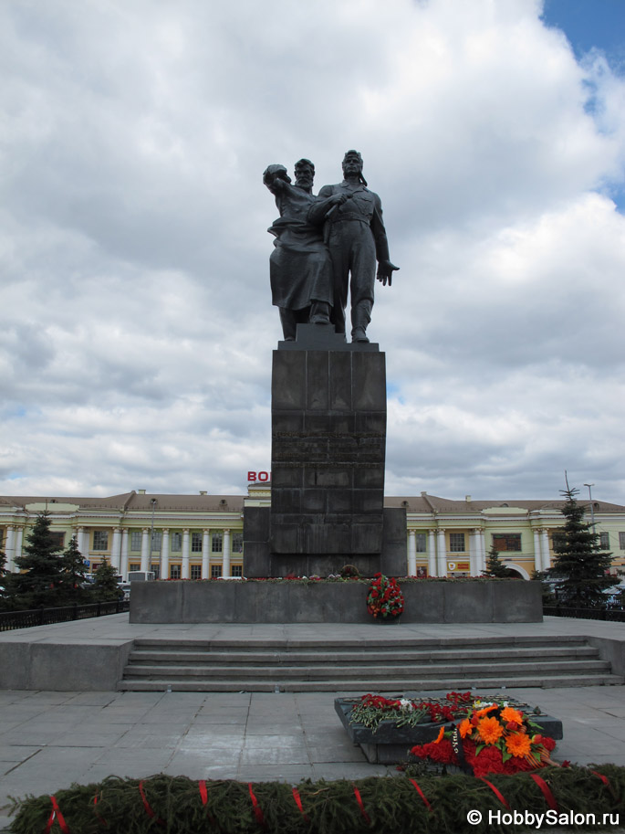 Памятник воинам Уральского добровольческого танкового корпуса – танкового соединения Сухопутных войск СССР, принимавшего участие в Великой Отечественной войне – установлен на привокзальной площади уральской столицы. Открытие монумента, авторами которого являются скульпторы П. А. Сажин и В. М. Друзин и архитектор Г. И. Белянкин, состоялось 22 февраля 1962 года.